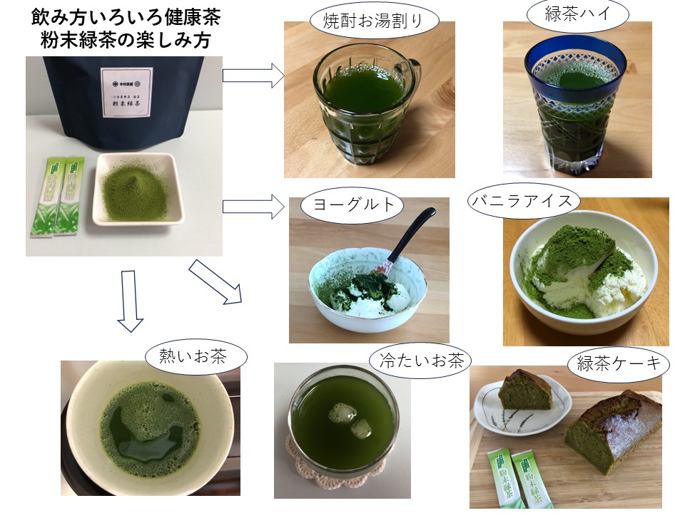 粉末スティックをご紹介します。この商品は抹茶とは加工方法は違いますがまるごと茶葉が取れる商品です。暑い夏場は粉末スティックを使った冷たい冷茶をスポーツドリンク代わりにお客様からとても飲みやすいとご意見をいただいてましたが、最近寒くなったこともあり焼酎のお湯割りに入れて飲んでる、これも飲みやすくてうまいよ、とお客様から好評いただいております。冷茶や焼酎の緑茶割りのほかにもいろんな用途に使えますので一度お試しください